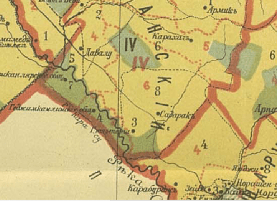 This section, now part of Turkey’s Iğdır Province and bordering the Nakhchivan Autonomous Republic, was, during the Tsarist era, paradoxically not included in the Surmalu Uyezd—the only trans-Aras district of the Erivan Governorate corresponding to modern-day Iğdır Province. Instead, it was part of the Erivan Uyezd of the Erivan Governorate, specifically the fourth police precinct (полицейский участок), comprising two rural communities: Gejimkanli and Kirmizikanli.