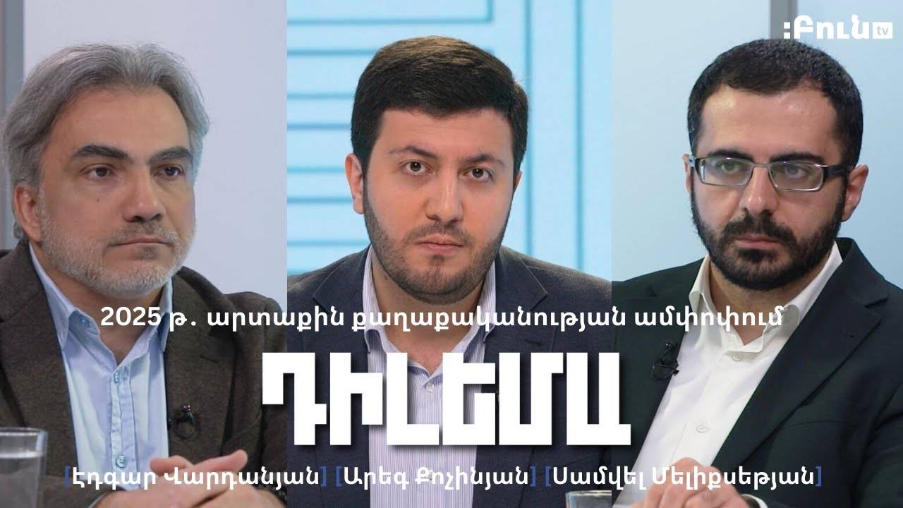 In the latest episode of the security-focused program Dilemma, political scientist Samvel Meliksetyan, expert Edgar Vardanyan, and Areg Kochinyan, Head of the Armenian Council NGO, review Armenia’s foreign policy in 2025.