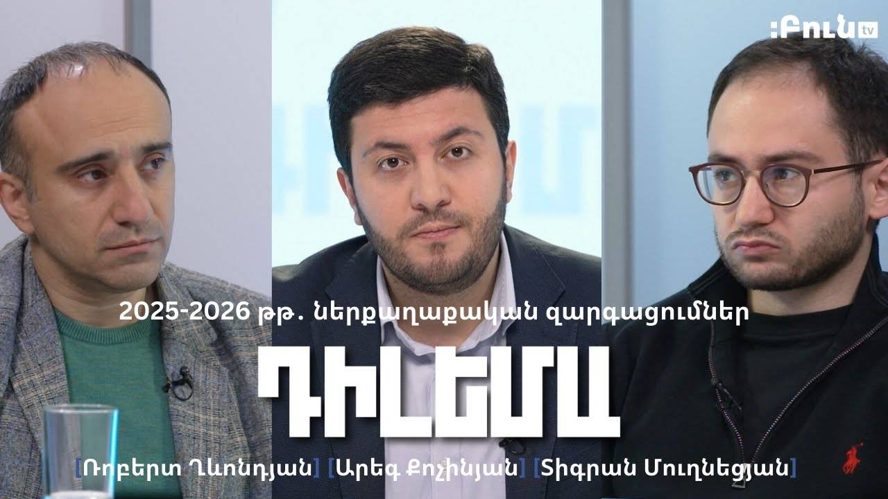 In the latest episode of the security-focused program Dilemma, Doctors of Political Science Robert Ghevondyan and Tigran Mughnetyan, together with Areg Kochinyan, Head of the Armenian Council NGO, discuss Armenia’s domestic political and electoral processes in 2025.