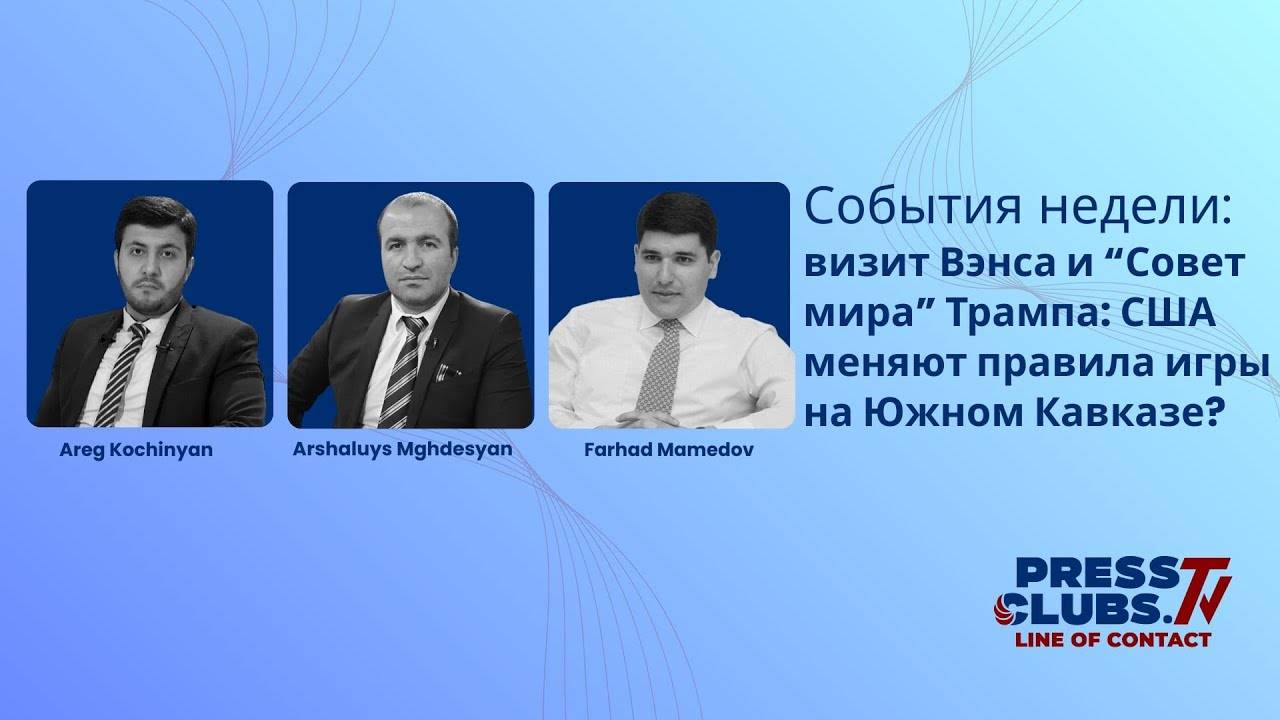 Share 0FacebookTwitterEmail 215 During the latest episode of Frontline: Weekly Events, Areg Kochinyan and Farhad Mamedov discussed the main events of the week in the South Caucasus and the surrounding region. AdrbejanArmenia Armenian Council «Armenian Council» Non-governmental organisation previous post “Strong Armenia” or “Strong Russian Armenia”? next post There are grounds to expect that the U.S. Vice President’s visit will be marked by the establishment of TRIPP. You may also like TRIPP: The Line Between Opportunities and Risks | Main Debate February 17, 2026 The Great Game Around Armenia and Azerbaijan: The U.S., Russia, India, and Beyond February 16, 2026 The Church’s Extraordinary Assembly Held Under Question Amid a New Criminal Case: Debate February 11, 2026 War Has Once Again Drawn Closer to the Caucasus: Iran, the United States, and the... February 5, 2026 DEBATE: Armenia Joins Trump’s Peace Council — What Opportunities and Risks Lie Ahead January 27, 2026 “Week of Accelerating the Peace Process” January 21, 2026