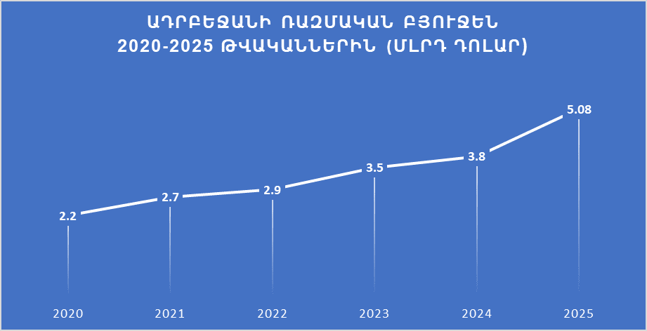 Ուշագրավ է, որ Ադրբեջանը չի սահմանափակվում միայն հռետորաբանությամբ: Հայաստանի սպառազինվելուց բողոքող Իլհամ Ալիևը հետևողականորեն շարունակում է երկրի ռազմականացման գործընթացը։ 2020 թվականի պատերազմից հետո ևս Ադրբեջանը տարեցտարի ավելացրել է իր ռազմական բյուջեն։ 2025 թվականին այն լինելու է ռեկորդային ՝ ավելի քան 5 մլրդ դոլար: